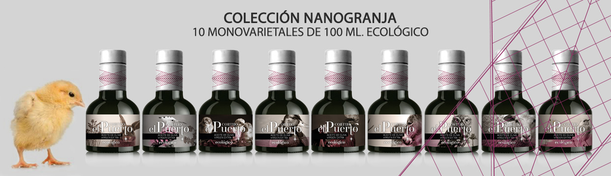 Para los eco, curiosos, indecisos, gourmets…Cortijo el Puerto ofrece su Colección “Nano-Granja” , un set de 10 botellas de diferentes variedades de AOVE que permite catar y maridar al gusto y conocer un poco más el universo de los aceites.